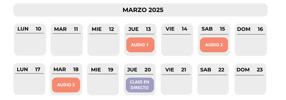 En estas fechas recibirás cada recurso de este entrenamiento